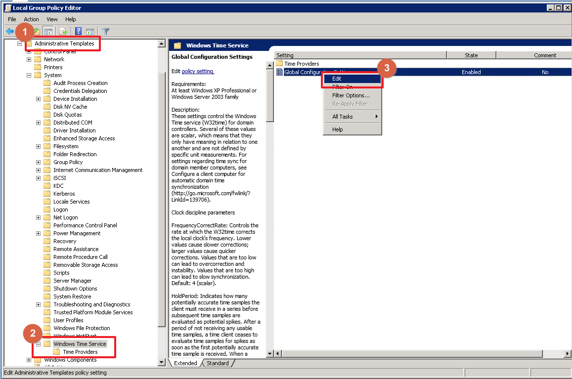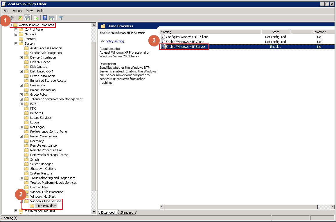관리 템플릿 -> 시스템 -> Windows 시간 서비스 -> 시간 공급자 -> Windows NTP 서버 사용